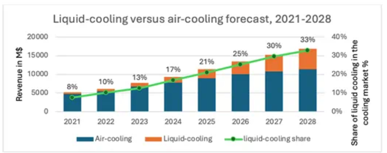 5. Omdia projects the data center cooling market to reach $16.8B by 2028, with liquid cooling as a leading technology. (Omdia)