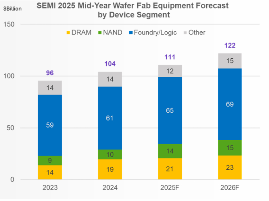 23. The wafer-fabrication equipment market will reach $122 billion in 2026, up 10% from (SEMI)