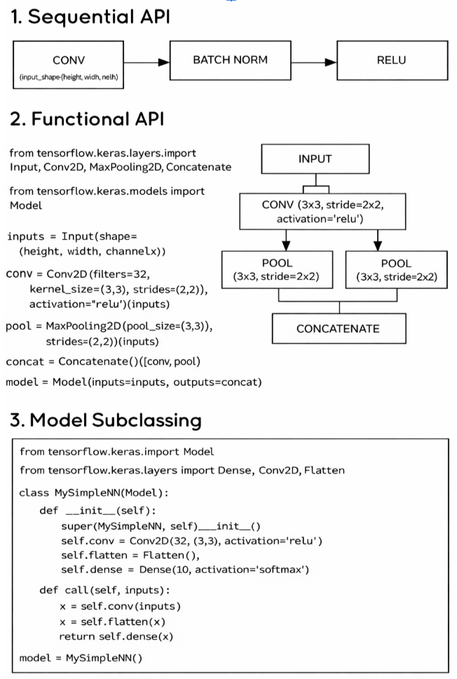 Here are the three major ways to create Keras model APIs: