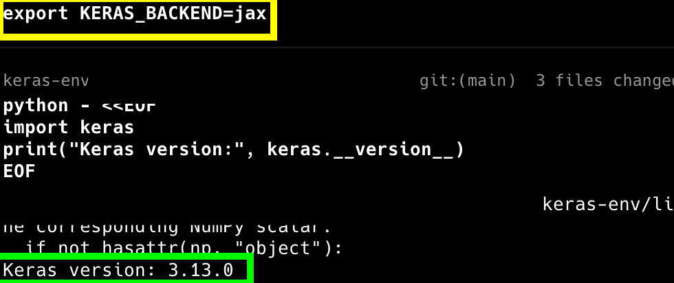 Post execution, you would see that Keras v3.13.0 is installed on the machine.