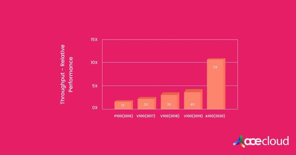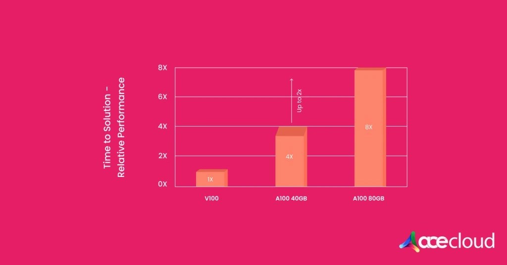 These workloads can be handled by accelerated servers and are supported by A100, which provides up to 8X enhanced implementation as compared to its predecessors (V100).