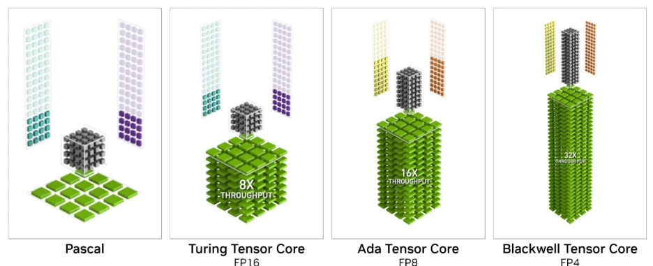 Figure 3: Blackwell 5th Generation Tensor Cores with FP4, double throughput of FP8