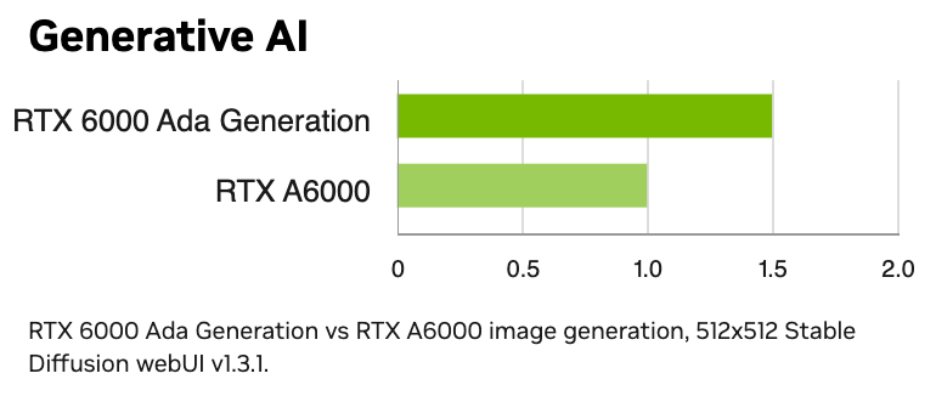 Figure 4: RTX 6000 Ada Generation performance with Generative-AI [Image Source]
