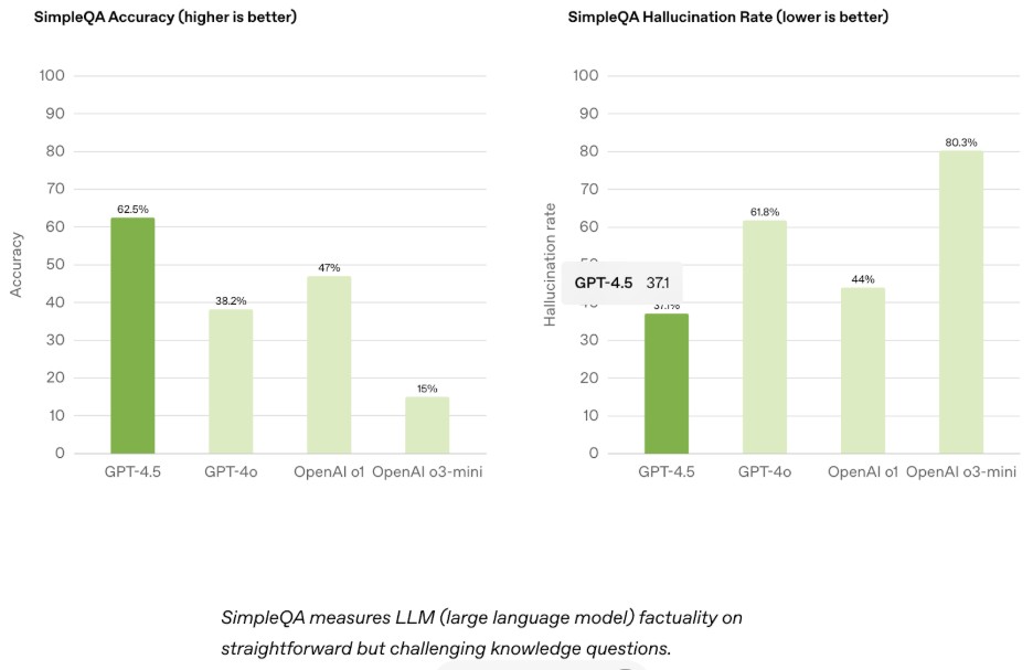 Figure 5 : GPT 4.5 benchmarks [Image Source]