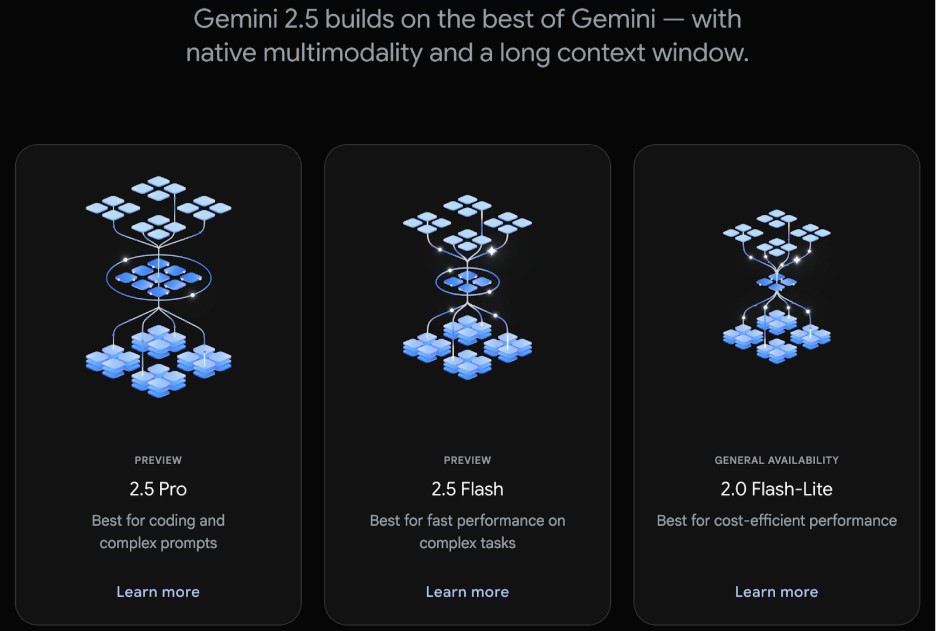 At the time of writing this blog, the older model Gemini 2.0 Pro & Flash-Lite, the multimodal LLMs that powers the Google chatbot, are available for general use. On the other hand, Gemini 2.5 Pro & Gemini 2.5 Flash are available for preview.